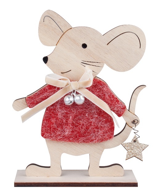 Myška v červeném svetříku dřevěná na postavení 12 x 15 x 4 cm