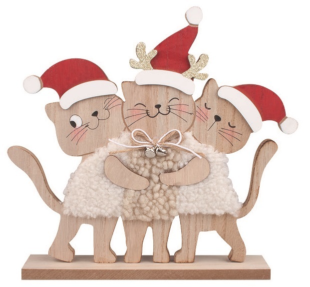 Kočky v červených čepicích, dřevěné na postavení, 23,5 x 22 x 4 cm Tyto dřevěné kočky v červených čepicích jsou roztomilou a veselou dekorací, která vnese do vašeho domova hřejivou zimní atmosféru. Sváteční čepičky a přívětivý výraz z nich dělají ideální doplněk nejen pro vánoční období, ale i...