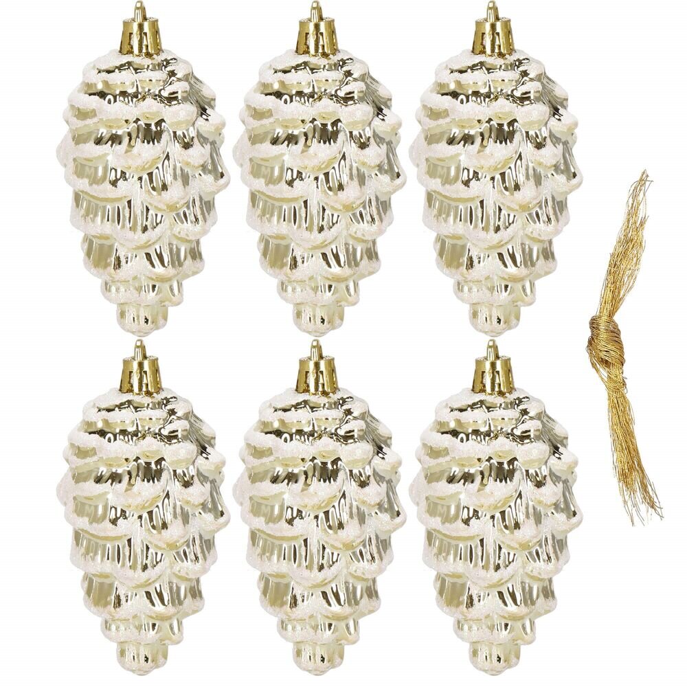 Lesklé a třpytivé vánoční ozdoby ve tvaru šišek dodají stromku elegantní zlatý nádech. Jsou vyrobeny z nerozbitného plastového materiálu, takže jsou bezpečné i při rodinném zdobení. Součástí balení jsou poutka a zlaté šňůrky pro snadné zavěšení. Skvěle poslouží jako ozdoba na stromek i jako...