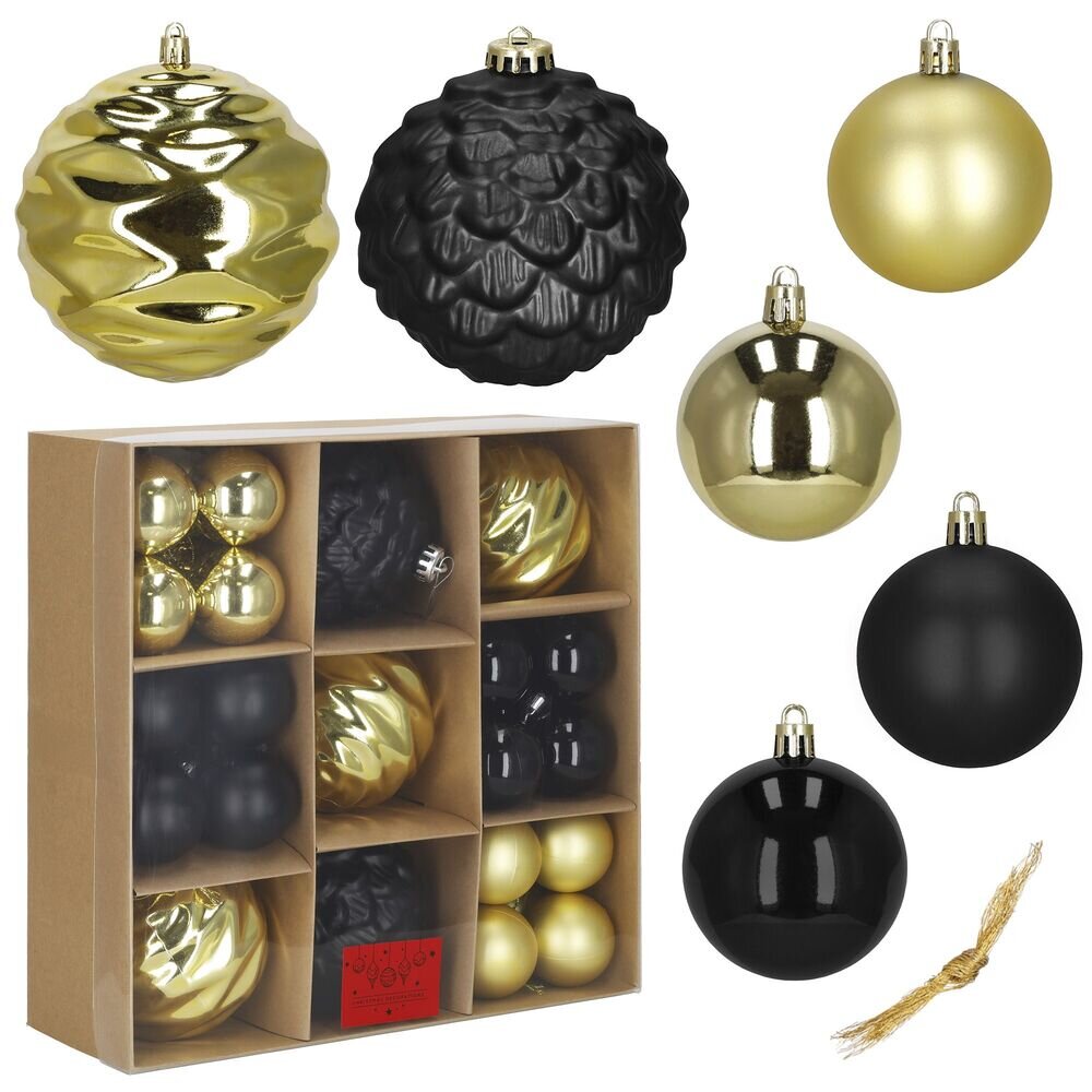 Vánoční baňky zlato-černé mix - 12/6 cm, sada 37ks CA0962