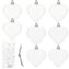 Sada vánočních ozdob ve tvaru srdíček v bílém provedení dodá vaší výzdobě jemný a romantický vzhled. Ideální jako dekorace na vánoční stromeček, sváteční stůl nebo do oken. Vyrobeny z nerozbitného plastového materiálu, vhodné pro vnitřní i venkovní použití. Součástí balení jsou poutka pro...