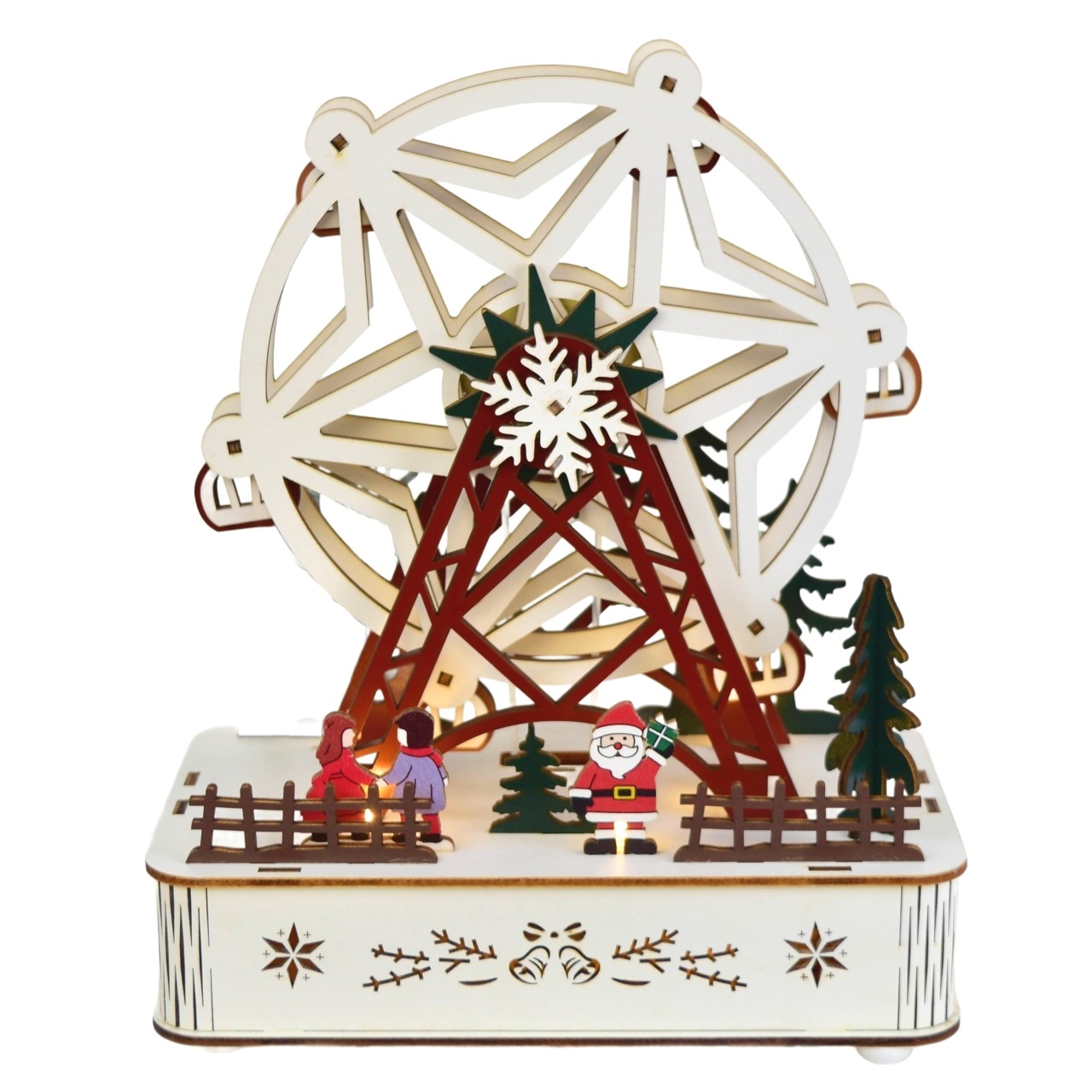 Dřevěný točící kolotoč s LED 23x22 cm