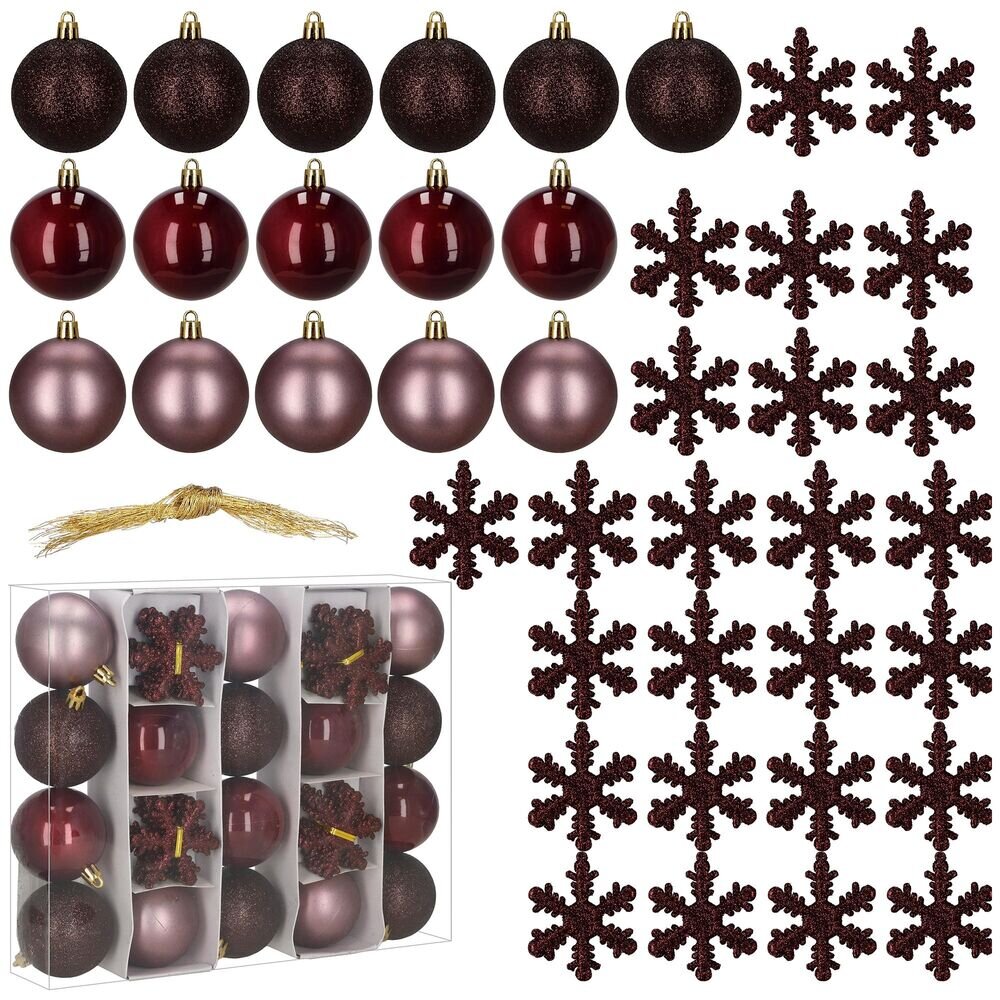 Elegantní sada fialových vánočních ozdob dodá výzdobě luxusní nádech. Obsahuje lehké, nerozbitné koule z plastu i dekorativní vločky, vše s praktickými poutky pro zavěšení. Vhodné na stromeček i jako doplněk interiérové či venkovní dekorace. Průměr koulí je 5,5 cm.Hlavní přednostiStylový fialový...