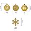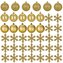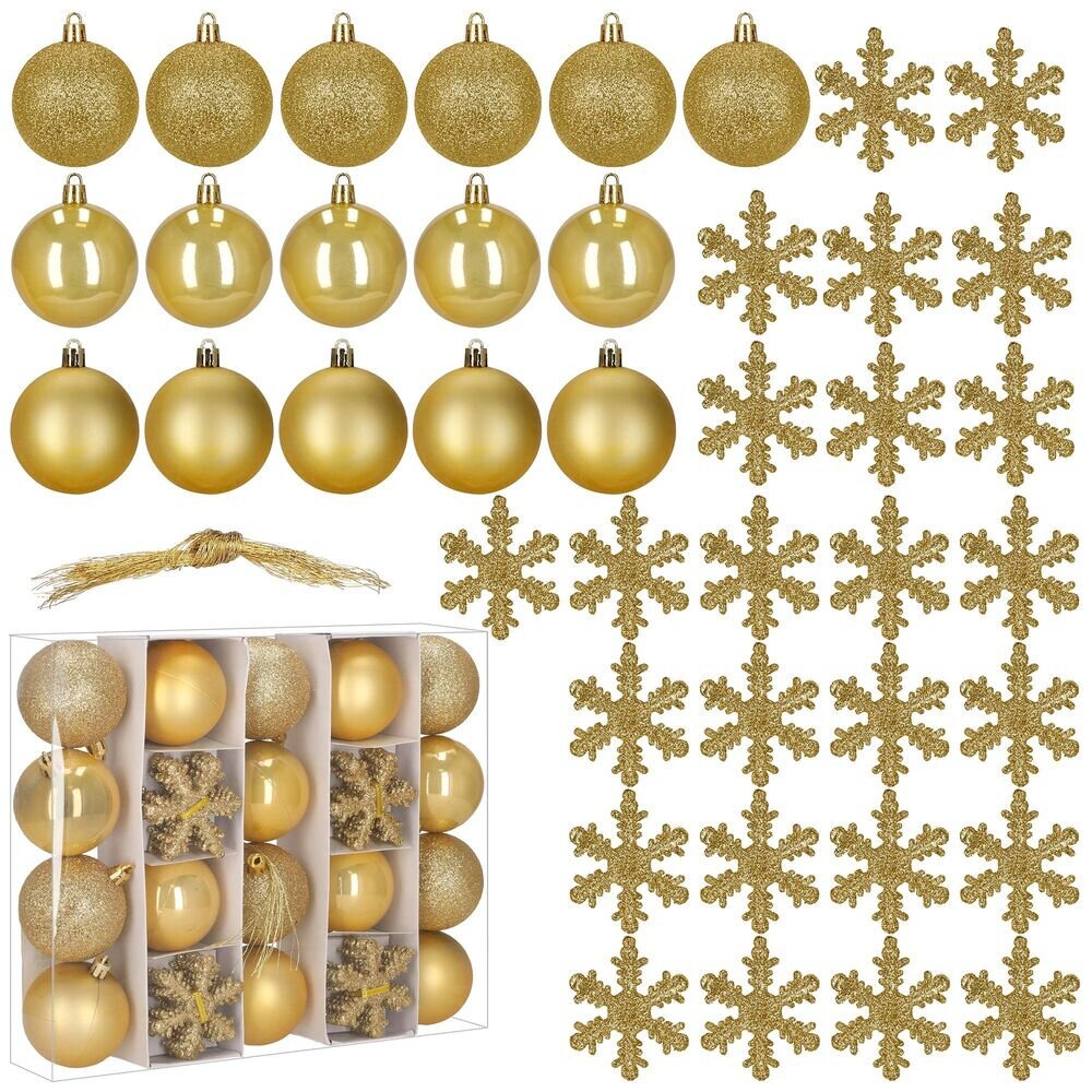 Luxusní sada zlatých vánočních ozdob v lesklém, matném i třpytivém provedení dodá dekoraci slavnostní vzhled. Obsahuje lehké, nerozbitné plastové koule i dekorativní vločky, vše s poutky pro snadné zavěšení. Skvělé na stromeček i pro výzdobu interiéru či exteriéru. Průměr koulí je 5,5 cm.Hlavní...