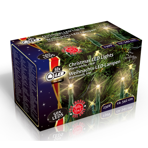 Vánoční světelný řetěz 50x LED dioda230Vvnitřní použitístupeň krytí IP20barva světla teplá bílácelková délka řetězu cca 5,5m (rozestup 8cm mezi LED + 150cm pro přívodní kabel) weiter lesen