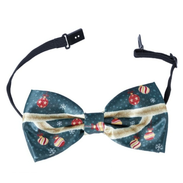 Vánoční motýlek s potiskem vánočních koulí a jemných vloček je zábavným, ale zároveň elegantním doplňkem na jakoukoli zimní či sváteční akci. Má tmavě zelený podklad, na kterém výrazně vynikají červené a zlaté ozdoby. Díky nastavitelné pásce se motýlek snadno přizpůsobí a pohodlně sedí na krku.Je...