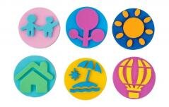 Pieczątki dziecięce, łatwe w obsłudze, średnica nadruku ok. 5 cm, 6 różnych motywów w 6 kolorach weiter lesen